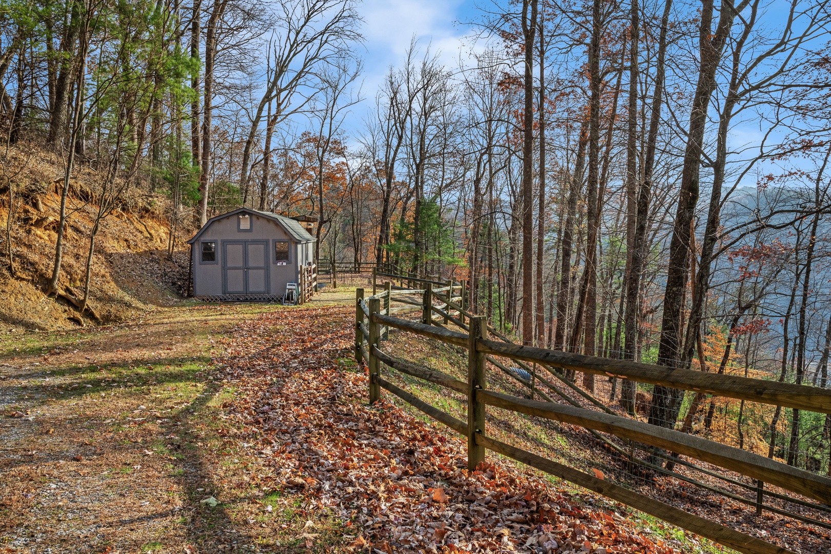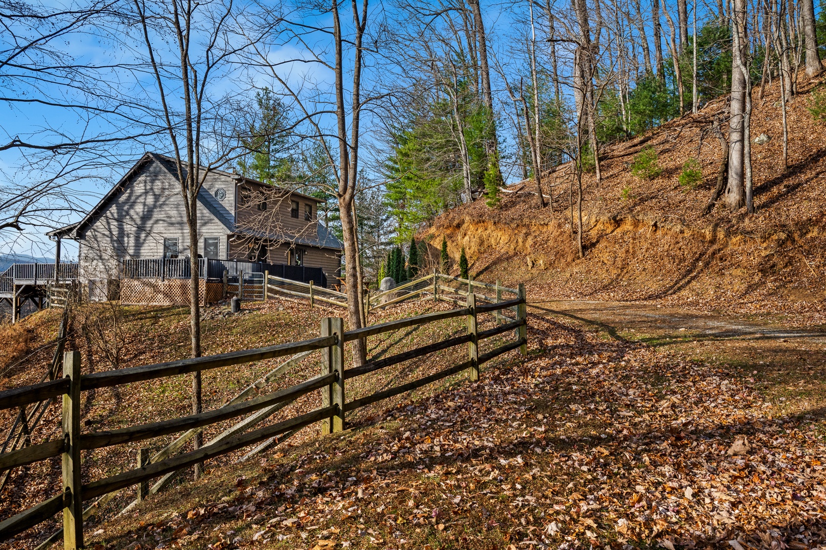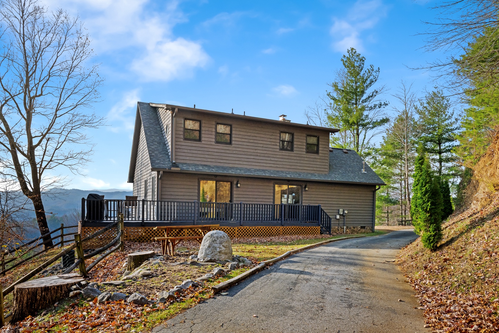 Located within Leatherwood Mountains Resort, you’ll enjoy access to horseback riding, tennis, fishing, tubing, hiking trails, and on-site dining—all just minutes away. Outside, a fenced backyard with rustic split-rail fencing and mesh enclosure offers the perfect space for your four-legged companions.
