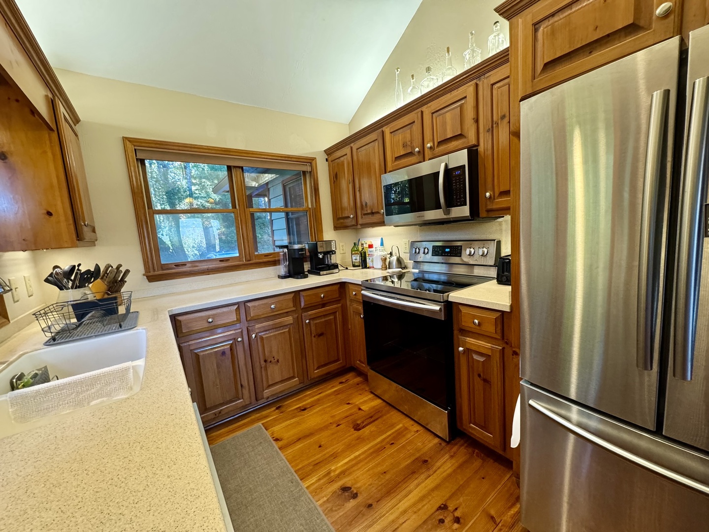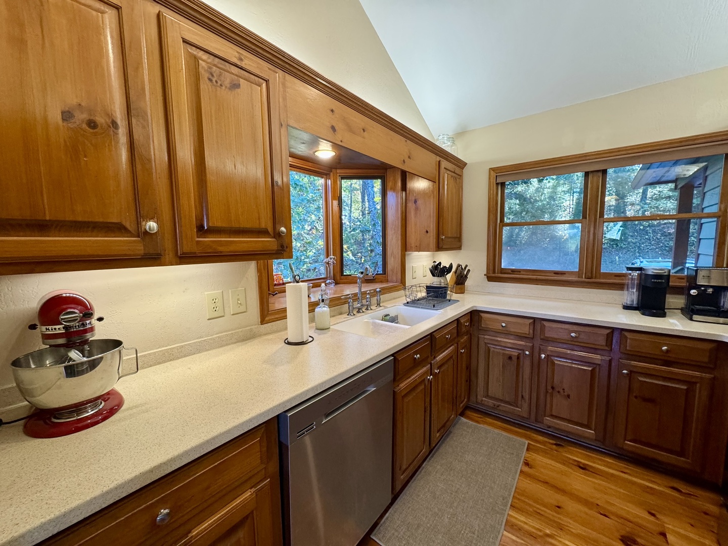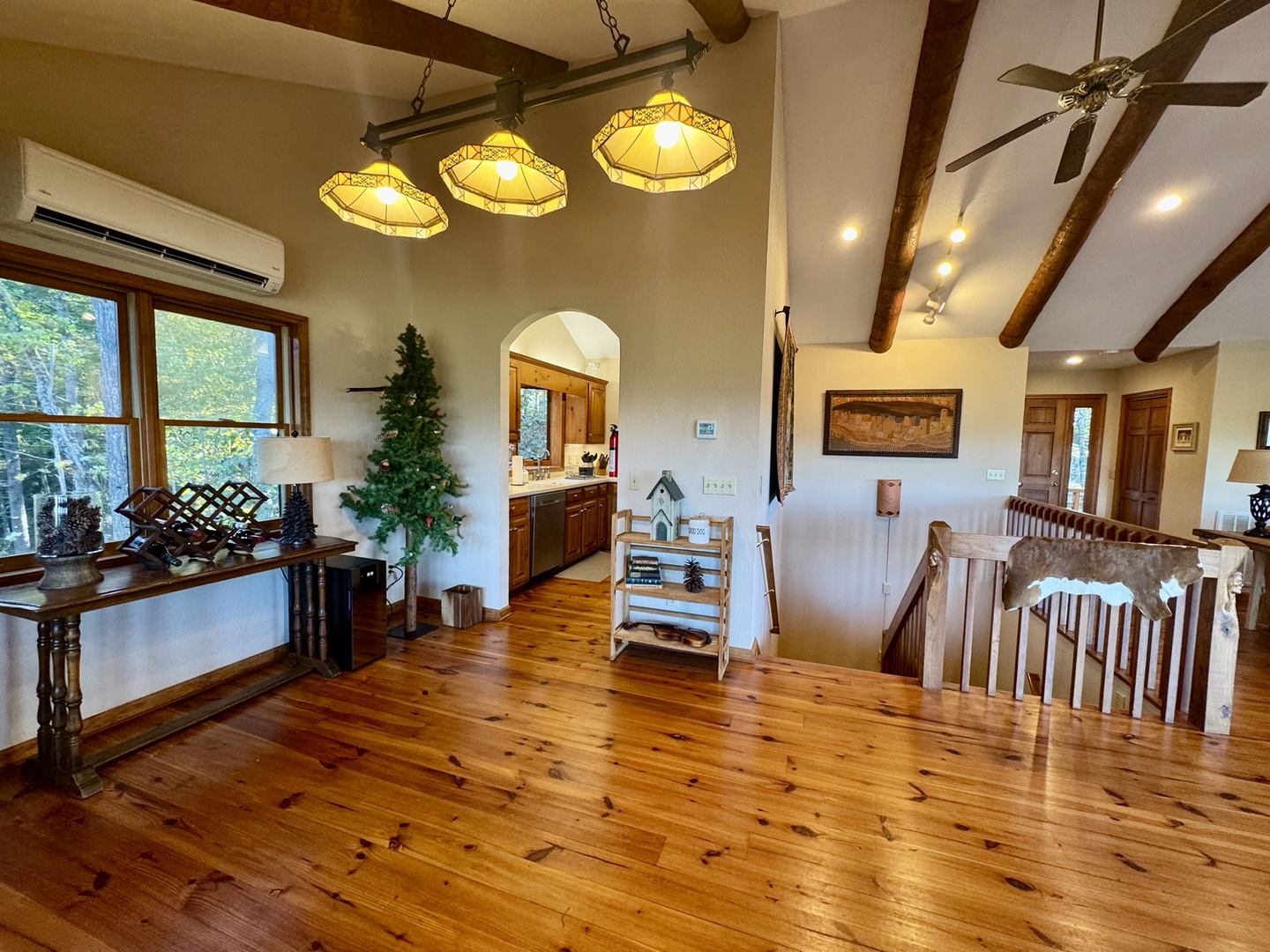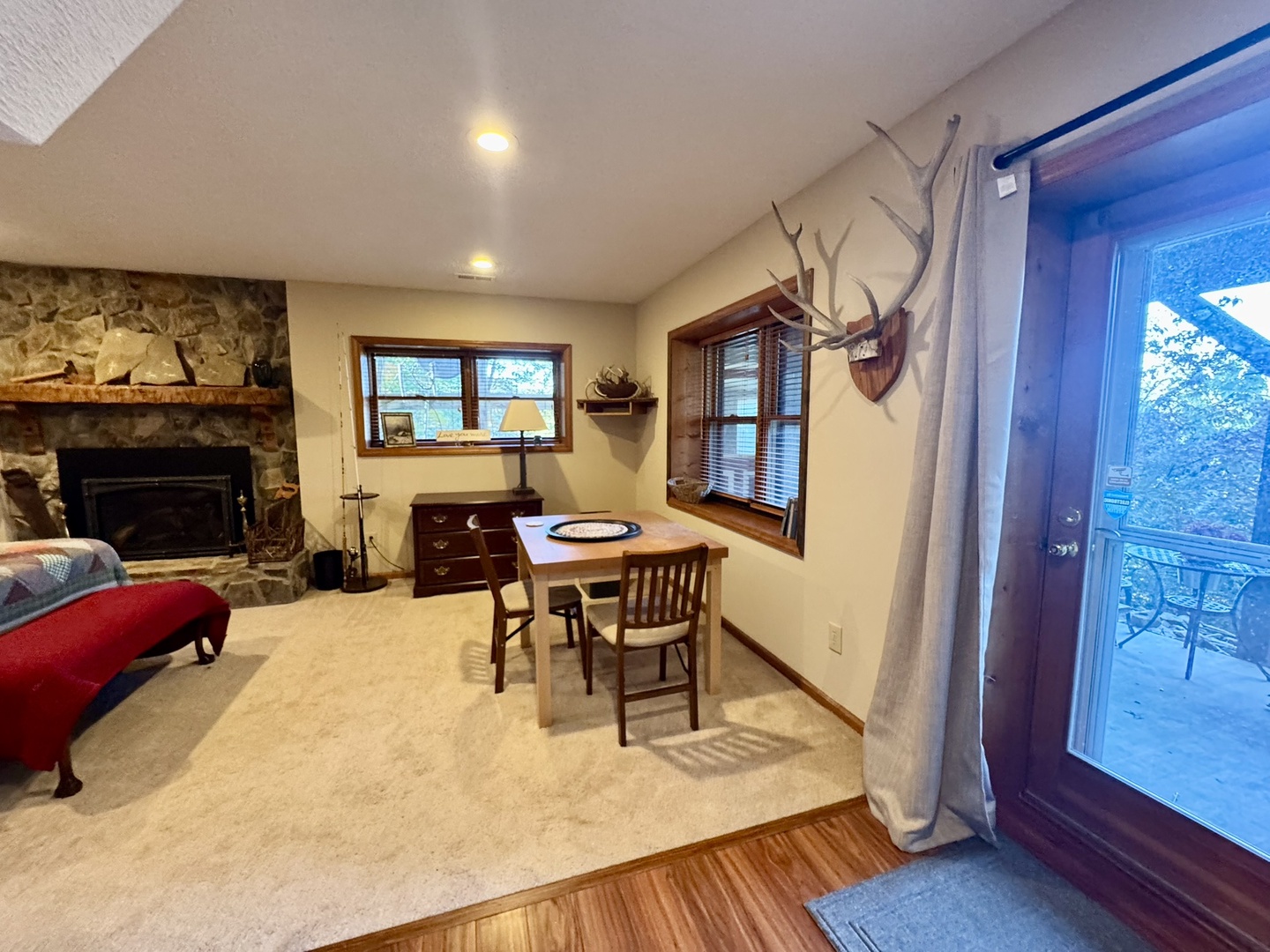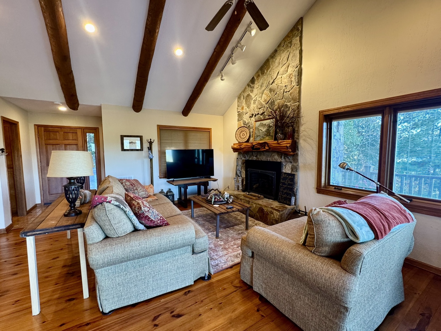 The main level welcomes you with a bright, open living area featuring large windows that frame the sweeping mountain vistas and a cozy fireplace that invites you to unwind. The fully equipped kitchen, complete with modern appliances and generous counter space, flows seamlessly into the dining area—an ideal spot for sharing meals and memories with a view.