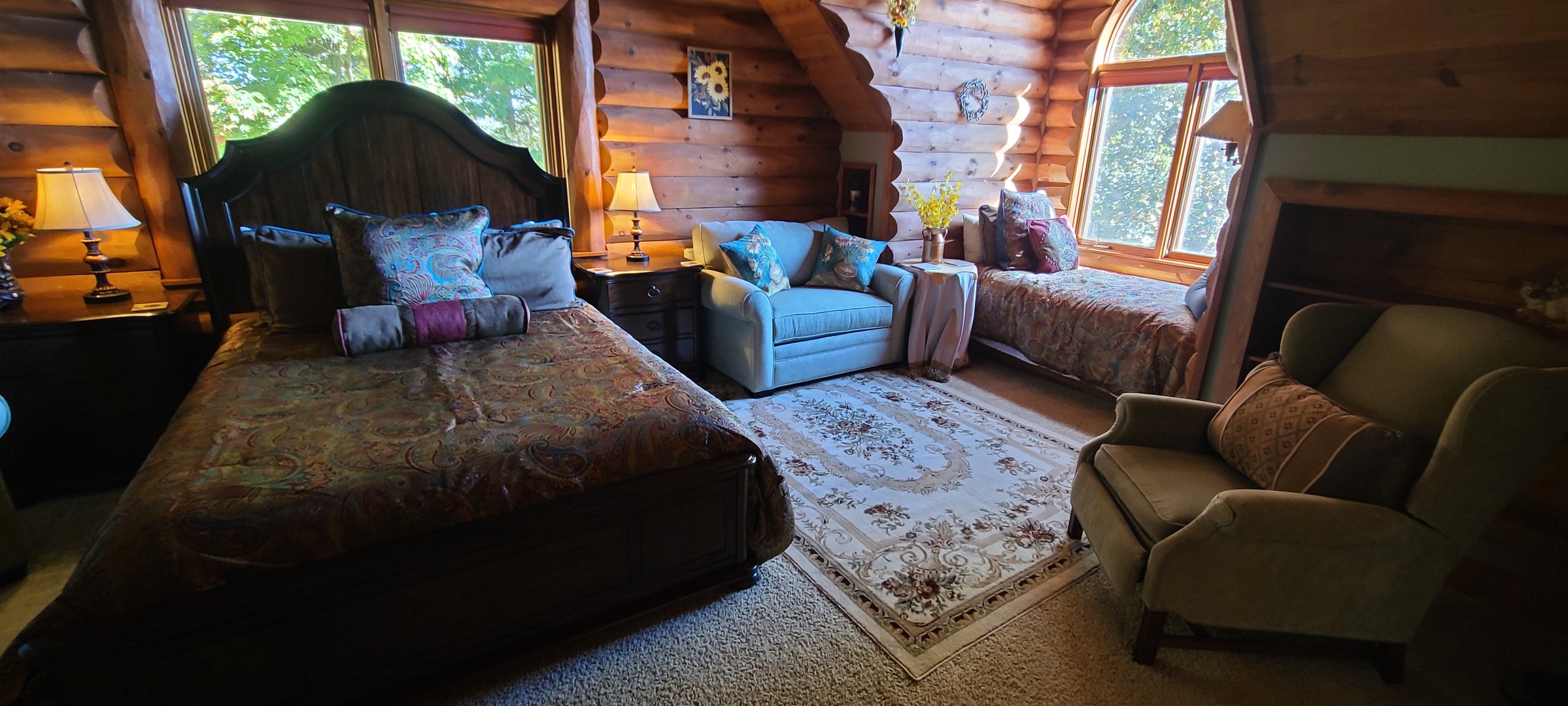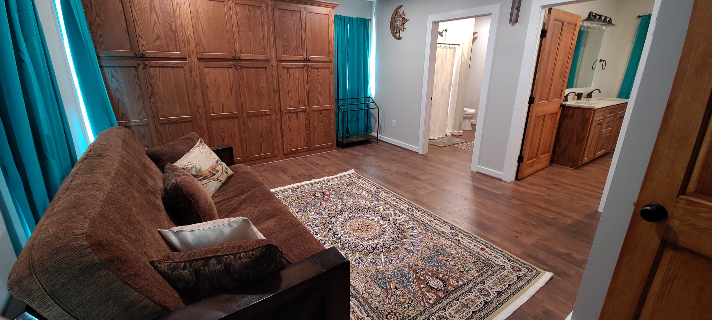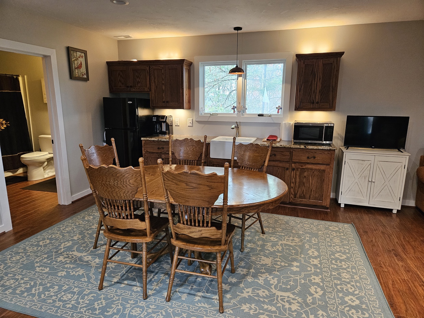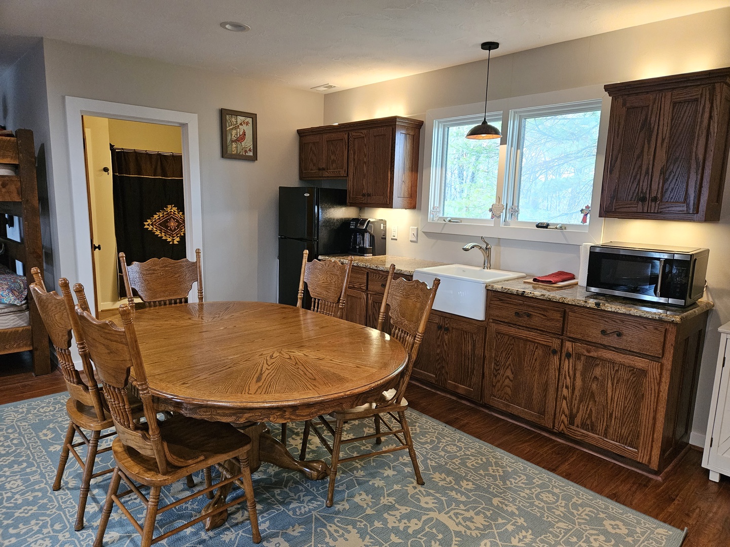 The Bunk Apartment is an additional rental "add-on", exclusively available to guests that book the main Lodge. The spacious "loft style" layout sleeps an additional 8 people in a series of 4 bunk beds in a large open room. There are 2 full baths, a kitchenette and comfy seating for your guest to spread out. There is also a sleeper sofa. Contact us directly to book the Bunk Apartment add-on.