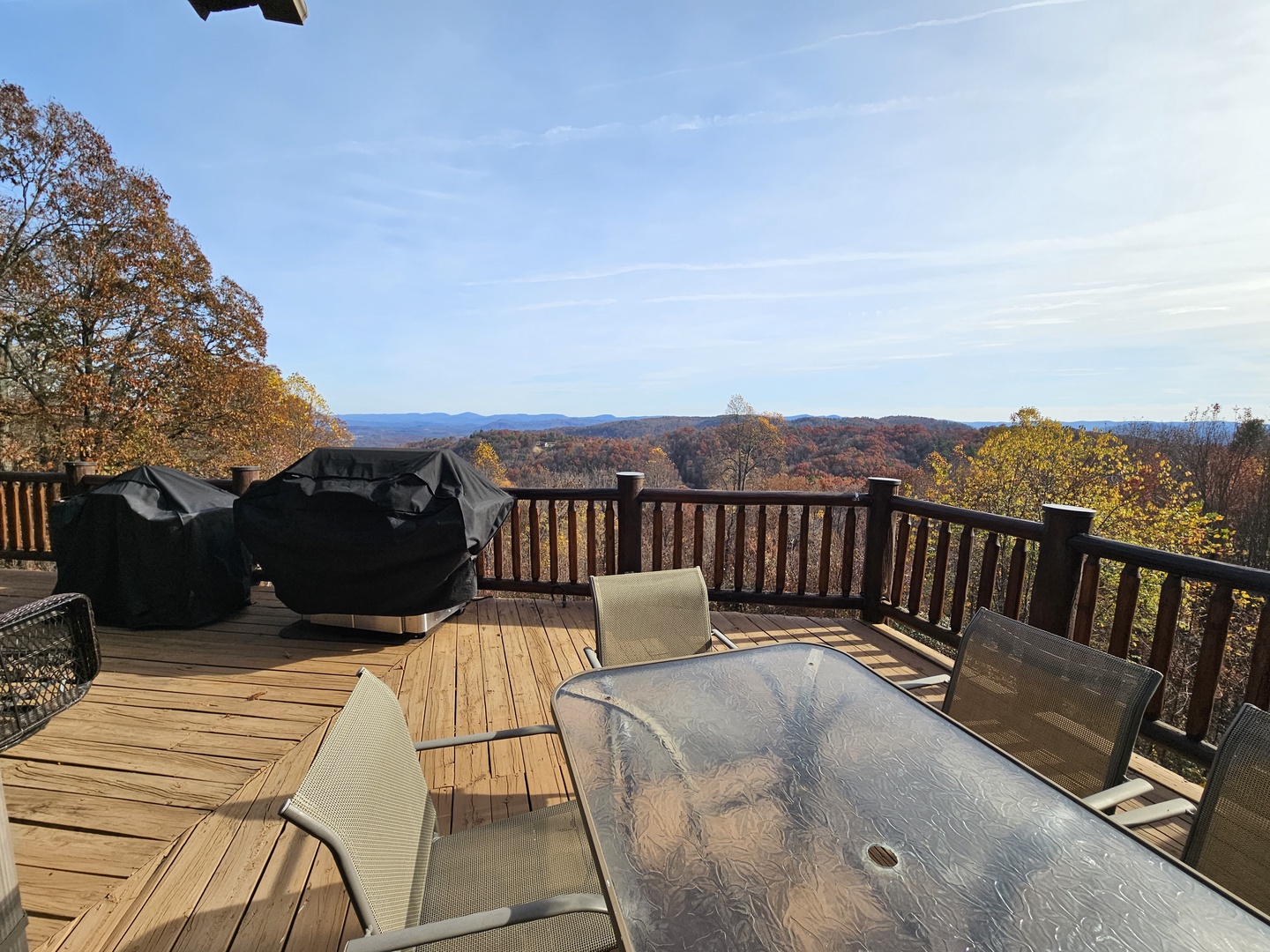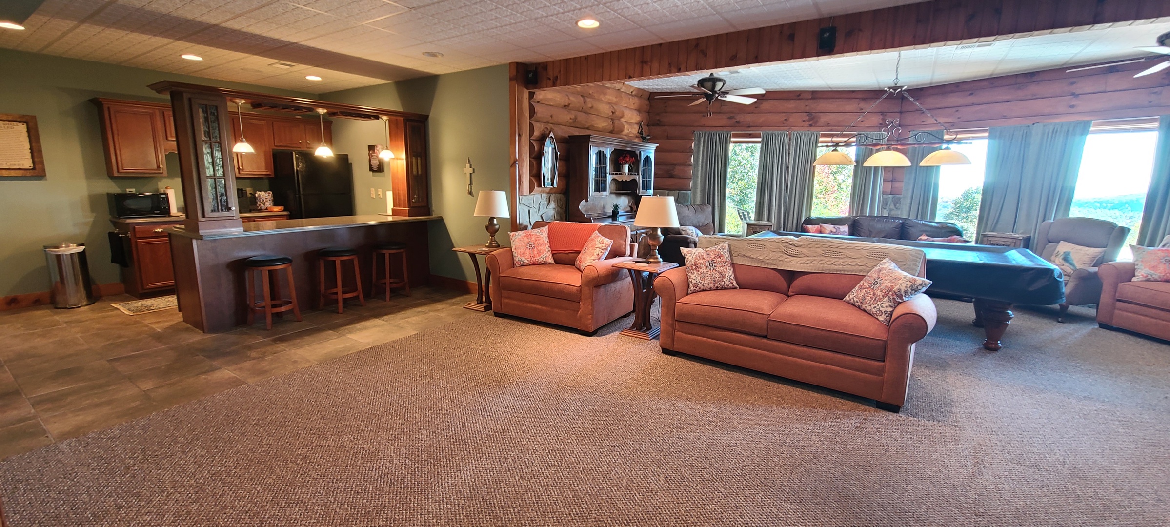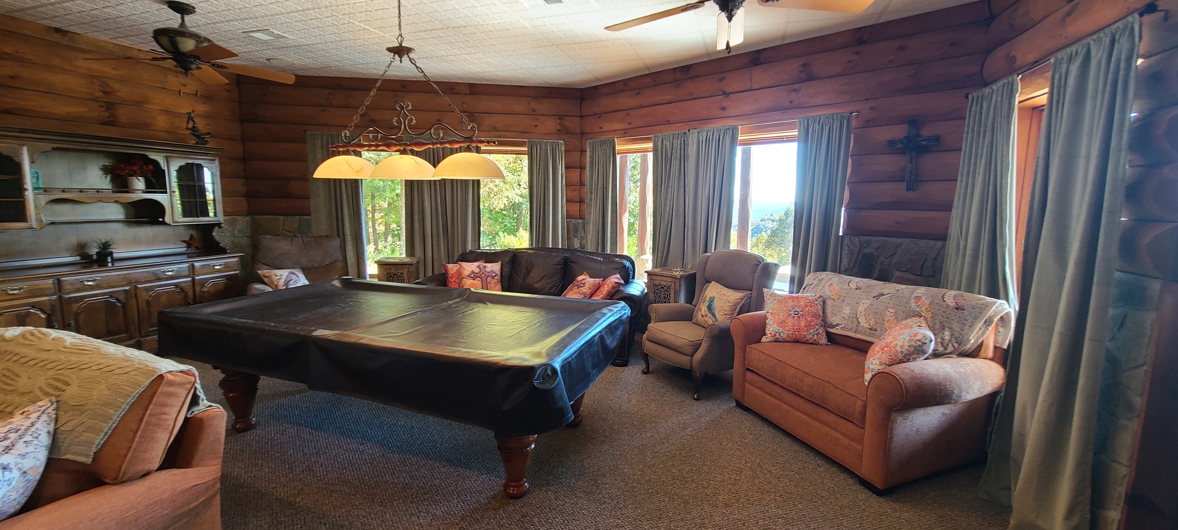 Trinity Lodge is a stunning mountaintop retreat that offers breathtaking panoramic views, nestled in the heart of Leatherwood Mountains Resort. This picturesque cabin boasts 3 bedrooms, 2 full bathrooms, 2 half bathrooms, and an additional apartment/bunkhouse (for additional fee) above a spacious 4-car garage. It's the perfect getaway for families or large groups!